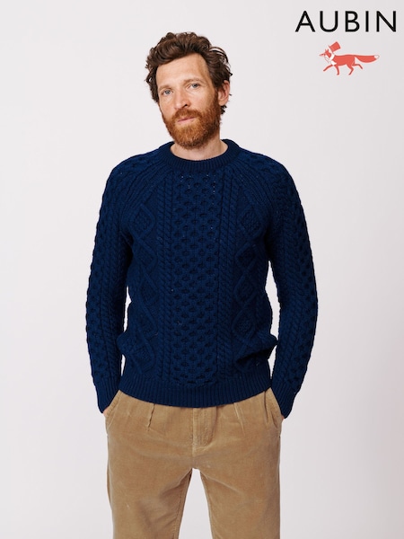 Aubin Westport Aran Wool Crew Neck Jumper
