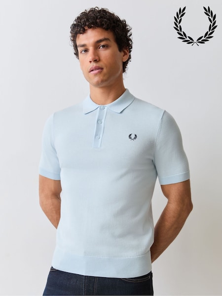 Fred Perry Sky Blue Cotton Knitted Polo Shirt