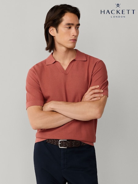 Hackett Red Knitted Short Sleeve Polo Shirt
