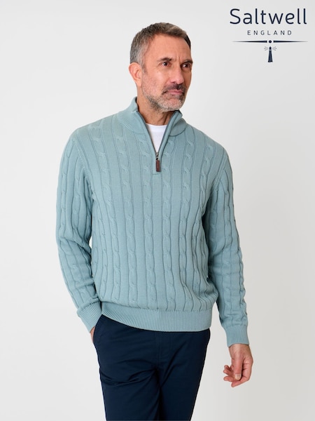 Saltwell Blue Cable Knit Quarter Zip Jumper