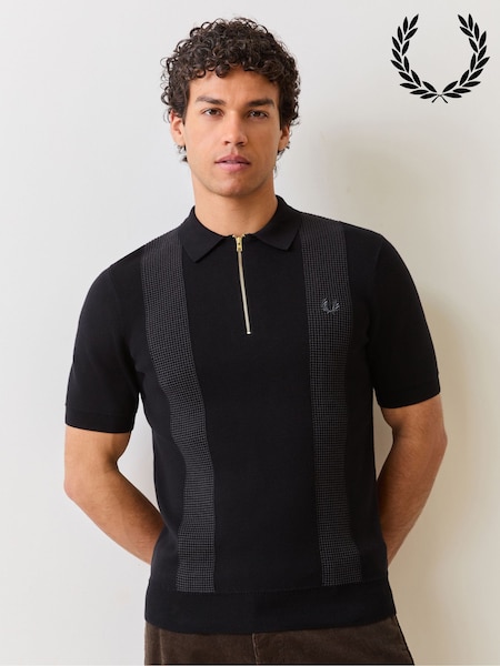 Fred Perry Black Panel Detail Knitted Polo Shirt