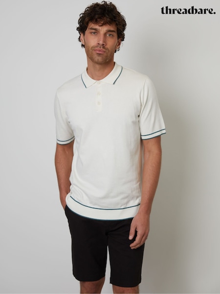 Threadbare Cream Knitted Short Sleeve Polo Shirt