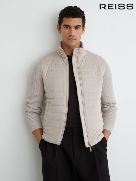 Reiss Oatmeal Bram Quilted Hybrid Zip-Through Jacket