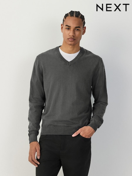 Charcoal Grey V-Neck Regular Fit Cotton Rich Jumper