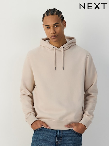 Ecru White Cotton Rich Lightweight Jersey Hoodie