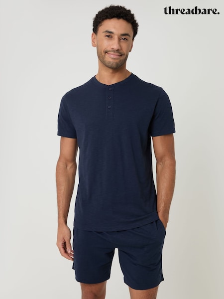 Threadbare Navy Grandad Pyjama Top & Shorts Set