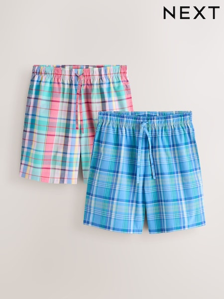 Blue/Pink Woven Check Pyjamas Shorts 2 Pack
