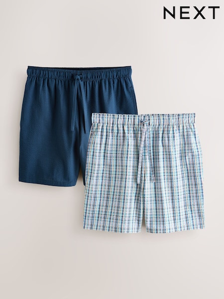 Blue Check/Stripe Woven Pyjama Shorts 2 Pack