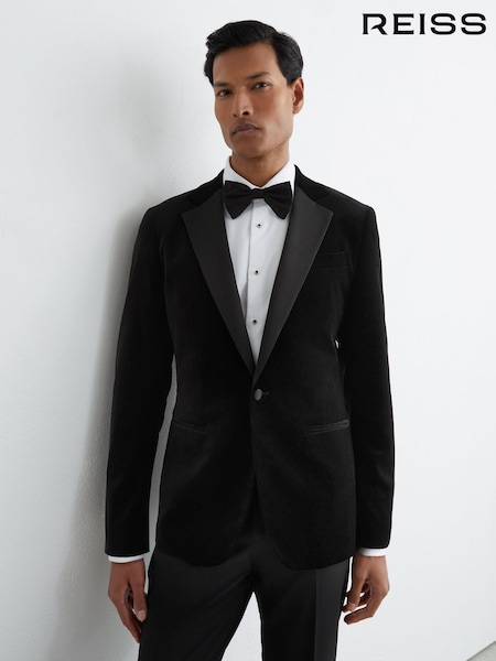 Reiss Black Ace Slim Velvet Single-Breasted Blazer Tailored-Fit