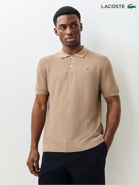 Lacoste Cream Fine Knit Moss Stitch Cotton Polo Collar Sweater