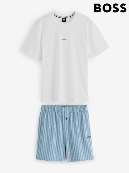 BOSS Blue Regular Fit Logo Pyjamas Set