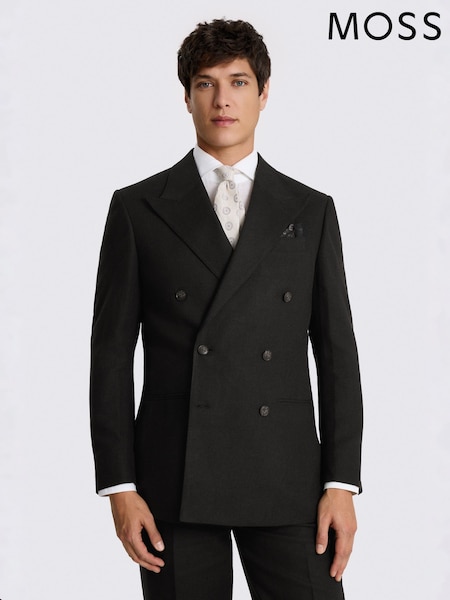 MOSS Black Slim Fit Double Breasted Stretch Suit Jacket