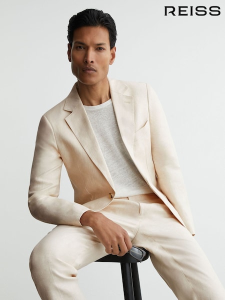Reiss Stone Kin Tailored-Fit Single Breasted Linen Blazer