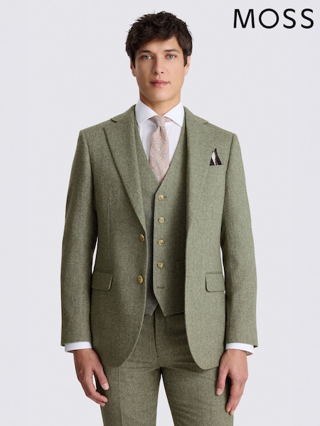 MOSS Olive Tailored Fit Herringbone Suit Jacket