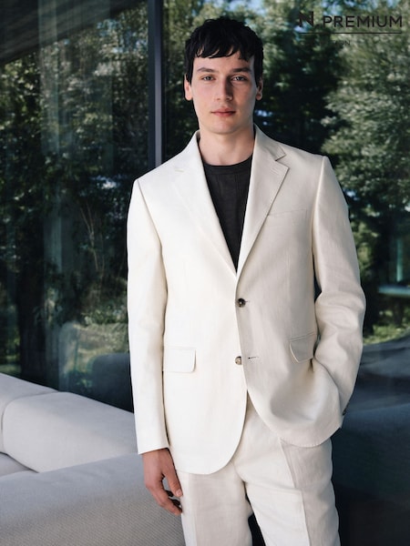 Ecru N.Premium Tailored Fit 100% Linen Suit Jacket