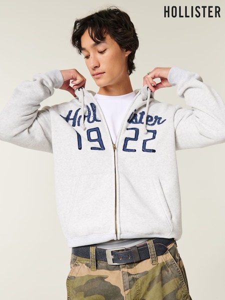Hollister Grey Feel Good Boxy Zip-Up Angel Graphic Hoodie