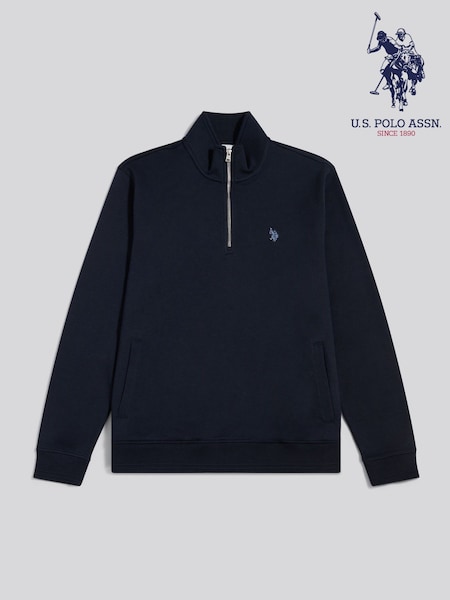 U.S. Polo Assn Navy Blue Twill Textured 1/4 Zip Funnel Sweatshirt