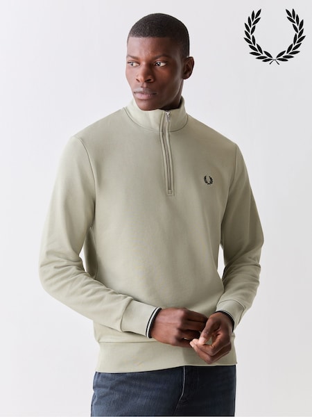 Green Quarter Zip Cotton Rich Jersey Sweatshirt