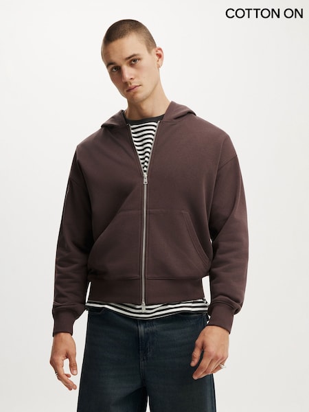 Nothing Ordinary Chocolate Brown Embroidered Heavyweight Zip Hoodie