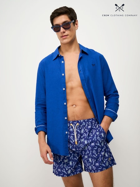 Crew Clothing Blue Oxford Stripe Seersucker Swim Shorts