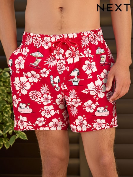 Red Snoopy Floral Print 5 Inch Swim Shorts