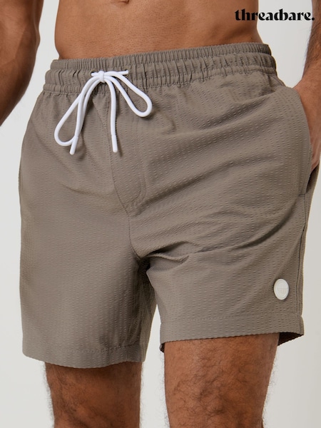Threadbare Taupe Stripe Seersucker Swim Shorts