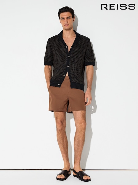 Reiss Dark Brown Orient Geometric-Print Drawstring Swim Shorts