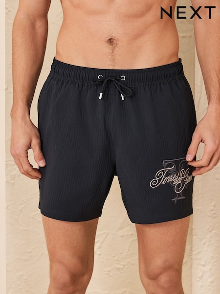 Black Graphic Waffle Texture 5 Inch Swim Shorts