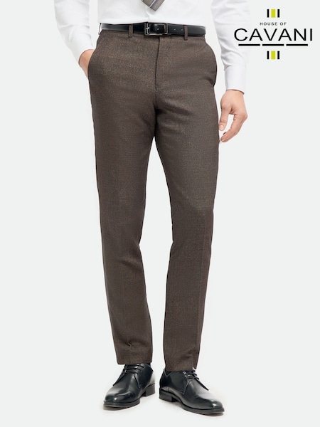 Brown Slim Fit Signature Cerutti 100% Italian Wool Suit Trousers