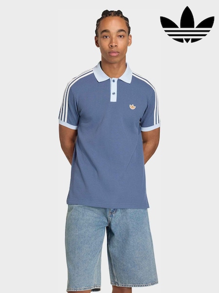 adidas Originals Light Blue 3 Stripes Rugby Long Sleeve Polo Shirt