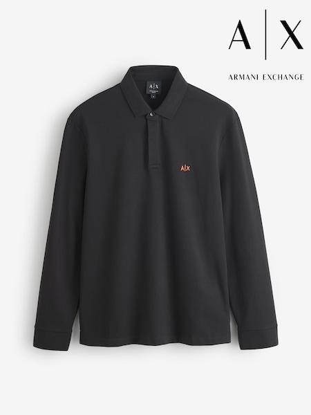 Armani Exchange Slim Fit Long Sleeve Pique Black Polo Shirt