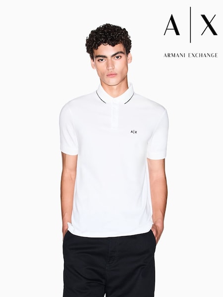 Armani Exchange White Slim Fit Contrast Tipped Collar Polo Shirt