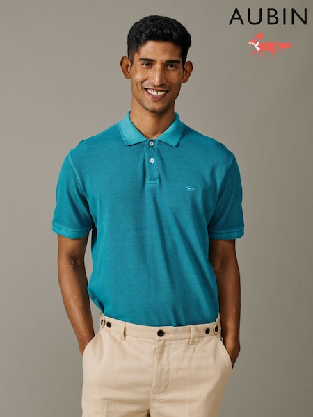 Aubin Blue Coleridge Textured Front Polo Shirt