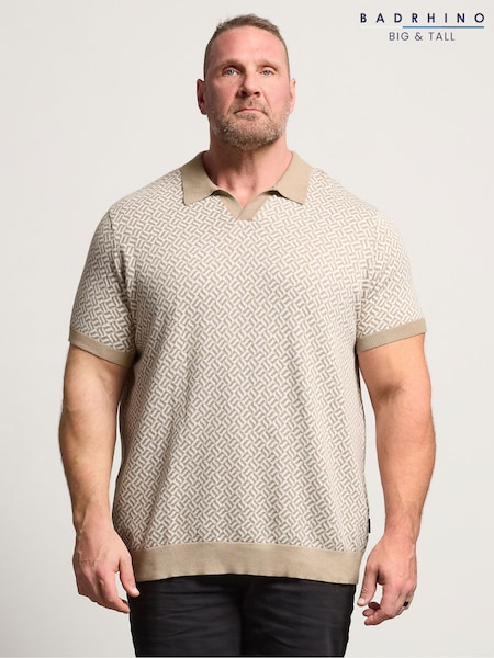 BadRhino Big & Tall Natural Patterned Knitted Trophy Polo Shirt