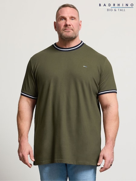 BadRhino Big & Tall Green Long Pique Ringer T-Shirt