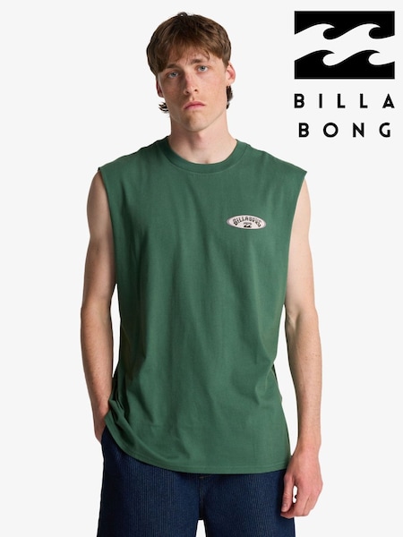Billabong Green RE Issue Backprint Graphic Logo Muscle Tank