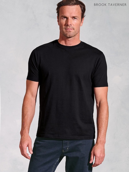 Brook Taverner Black Pure Cotton Jersey T-Shirt