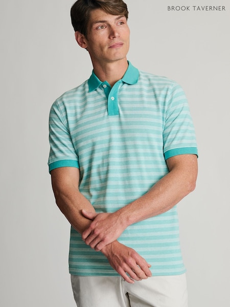 Brook Taverner Green Textured Stripe Cotton Polo Shirt