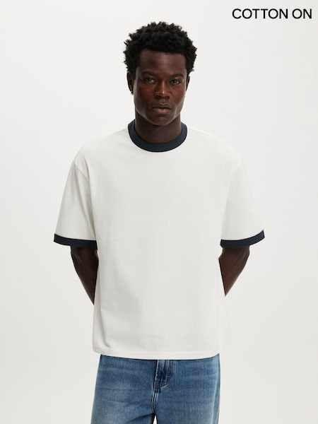 Cotton On Vintage White/True Navy Ringer Cropped Fit T-Shirt