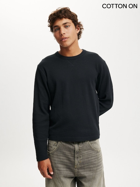 Cotton On Black Cropped Fit Textured Long Sleeve T-Shirt