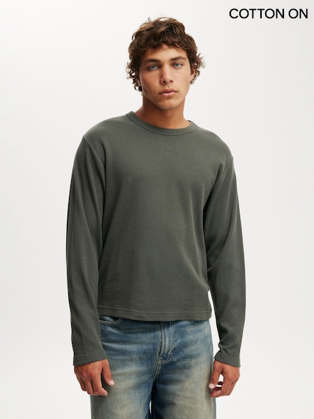Cotton On Green Cropped Fit Textured Long Sleeve T-Shirt