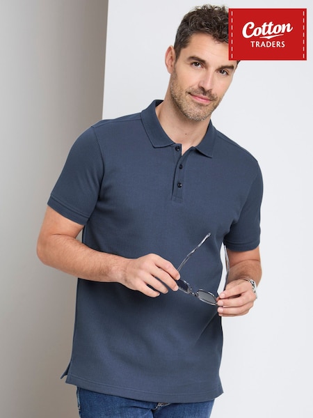 Cotton Traders Blue Short Sleeve Textured Rib Polo Shirt