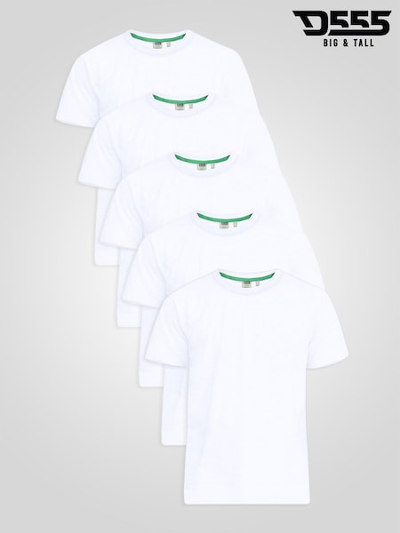 D555 White Combed Cotton Crew Neck T-Shirt 5 Pack