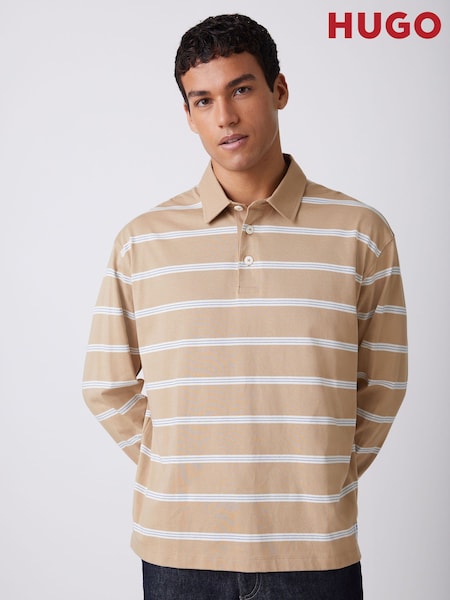 HUGO Natural Long Sleeved Striped Polo Shirt