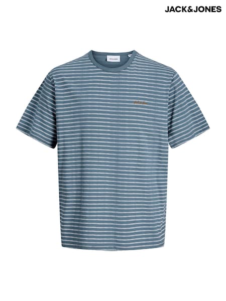 JACK & JONES Grey Relaxed Fit Stripe T-Shirt
