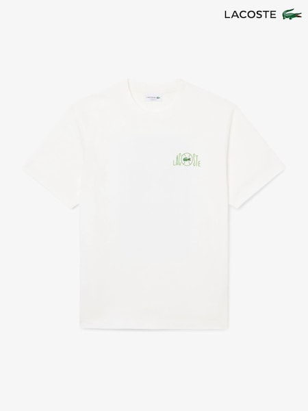 Lacoste White Classic Fit Back Print Heavy Cotton T-Shirt