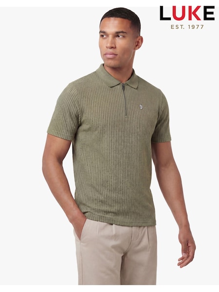 Luke 1977 Green Waffle On 1000 Clover Zip Polo Shirt