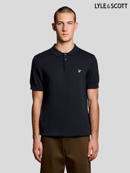 Lyle & Scott Black Cotton Short Sleeve Knitted Polo Shirt