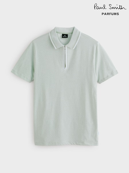 PS Paul Smith Green Quarter Zip Tipped Detail Polo Shirt