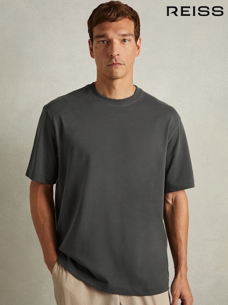 Reiss Washed Black Tate Cotton Pigment-Dyed Relaxed-Fit T-Shirt